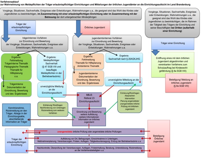 Das Ministerium für Bildung, Jugend und Sport (MBJS) fungiert als Aufsichtsbehörde für das „Haus der Athleten“. Alle Entwicklungen und Ereignisse, die gemäß § 47 Abs. 1 Nr. 2 SGB VIII geeignet sind, das Kindeswohl zu gefährden unterliegen der Meldepflicht. Diesbezüglich sind die „Hinweise zu den Meldepflichten gemäß § 47 SGB VIII Verfahren und Formulare“[1] zu beachten.